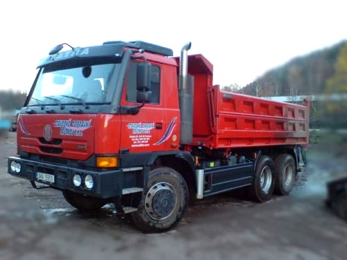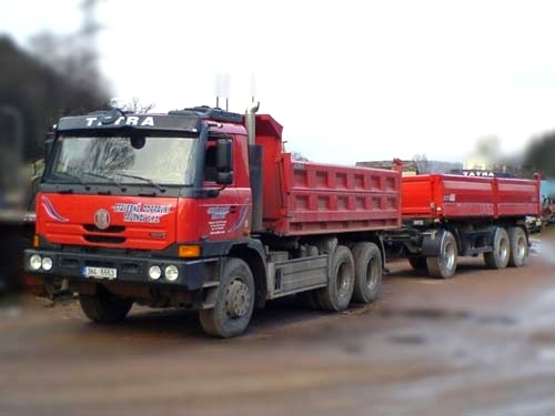 Třístranný sklápěč pro převoz sypkých hmot, zeminy, stavebních sutí a jiných materiálů. Svým výkonem umožňuje použití i v obtížných podmínkách.