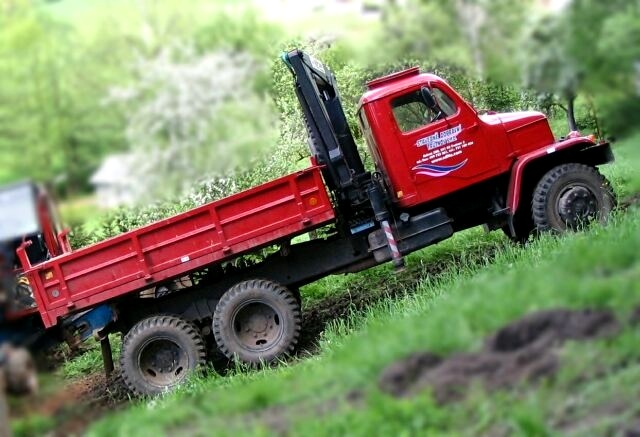 Třístranný sklápěč pro převoz sypkých hmot, zeminy, stavebních sutí a jiných materiálů. Vozidlo určené také do těžkých terénů a podmínek.